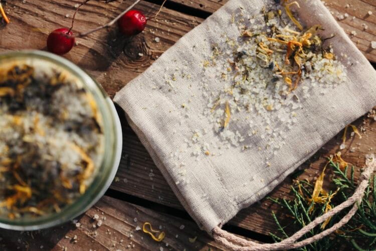 - Zioła i naturalne sole tworzą atmosferę sprzyjającą wyciszeniu i uziemieniu, przypominając o potrzebach naszego ciała i ducha.