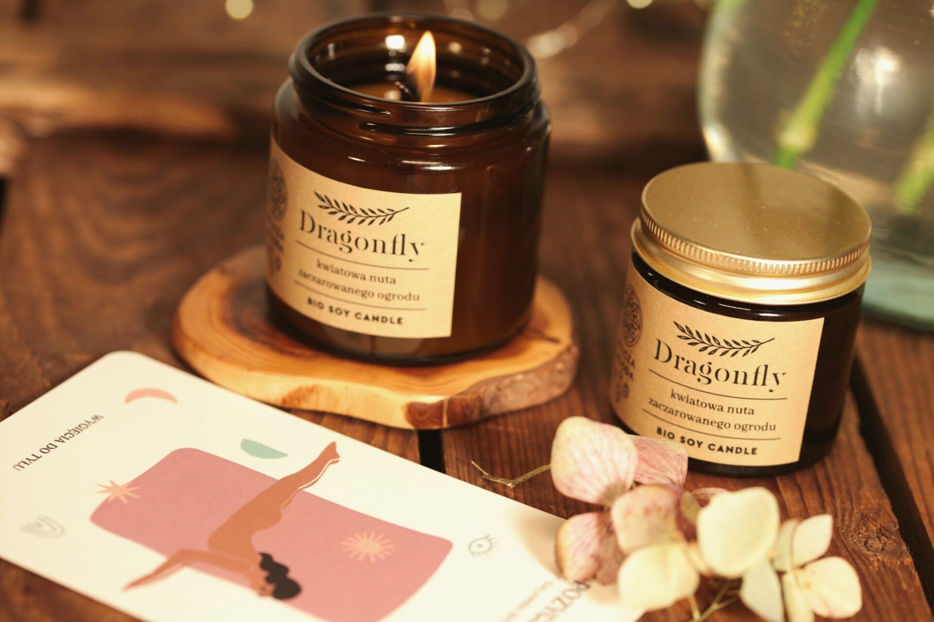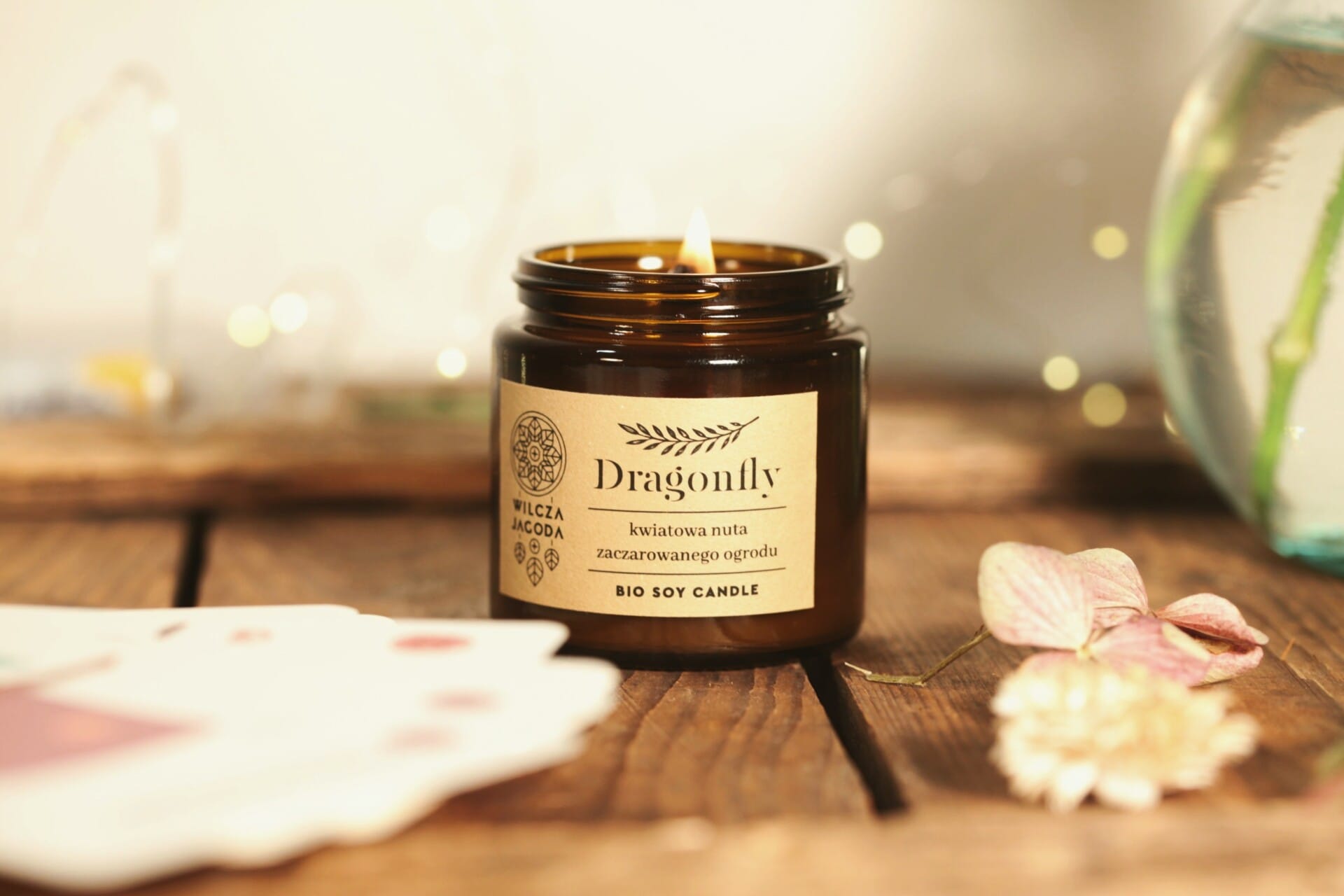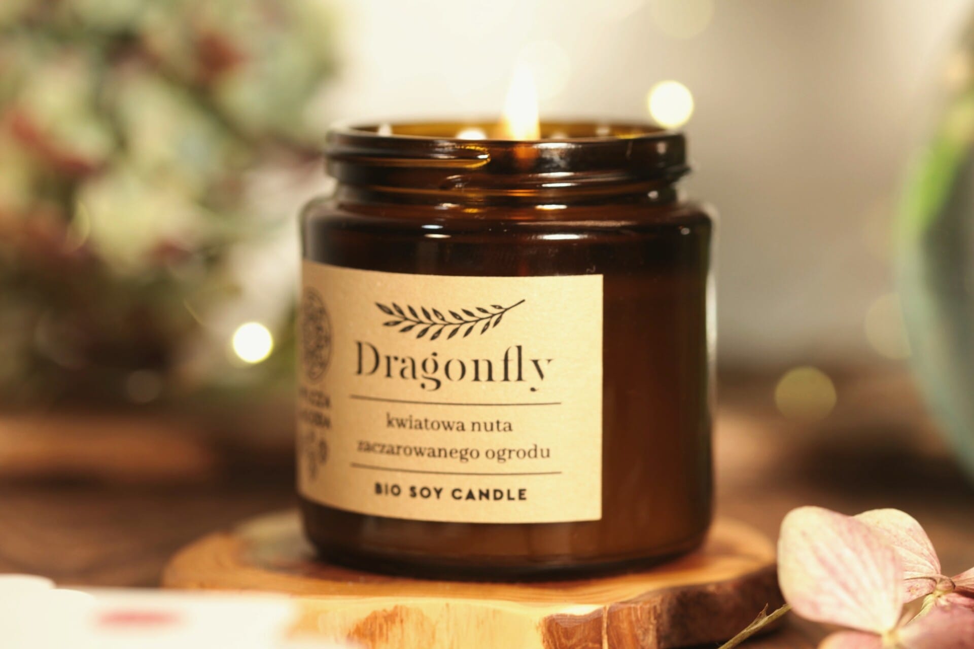 Świeca sojowa Dragonfly jest świeża jak wiosenny poranek, orzeźwiająca jak koktajl z młodych nowalijek, słodka jak zapach pierwszych kwitnących kwiatów.