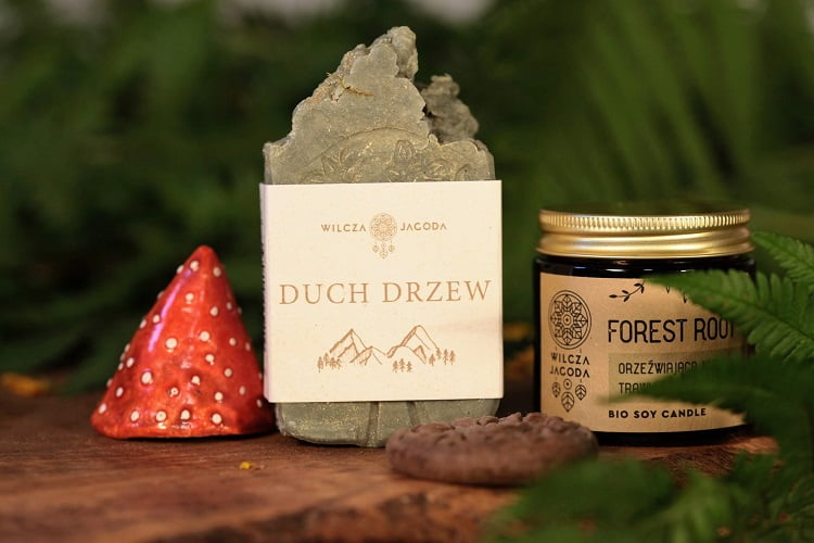 - Duch Drzew – naturalne, delikatne mydło z neem, zieloną glinką, maceratem z sosny oraz leśnymi olejkami eterycznymi.