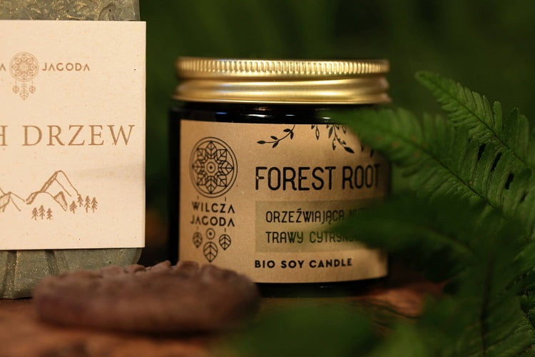 - Świeca sojowa Forest Root 60 ml – orzeźwiająca i świeża kompozycja trawy cytrynowej, cedru i jodły. Zapach, który budzi energię i przynosi ukojenie. Do jej produkcji użyliśmy wyłącznie naturalnych olejków eterycznych.