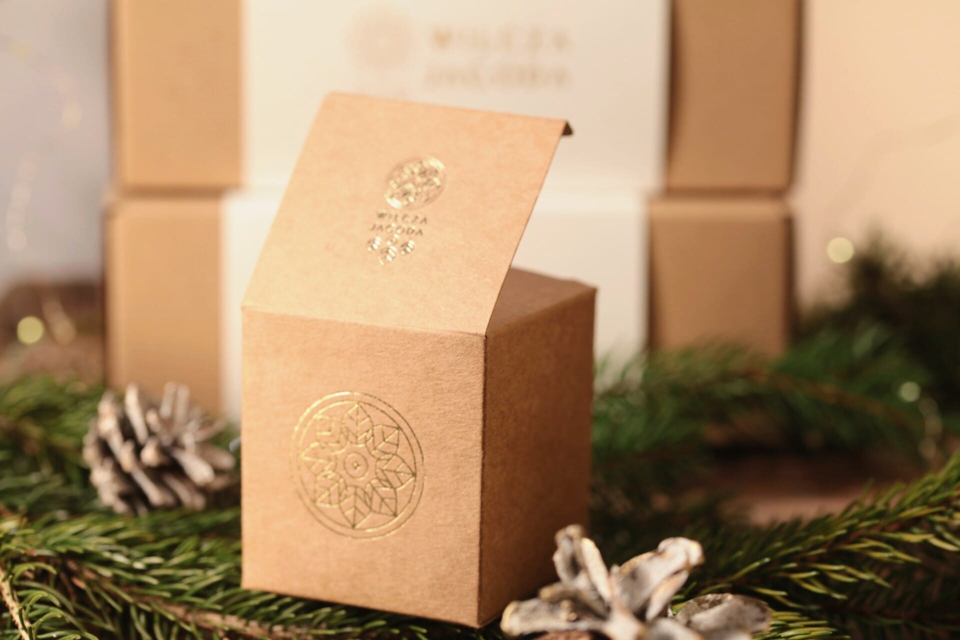 Słoik z brązowego szkła, złota aluminiowa nakrętka, biała etykieta z wizerunkiem mysikrólika – prosto i pięknie, w duchu natury.