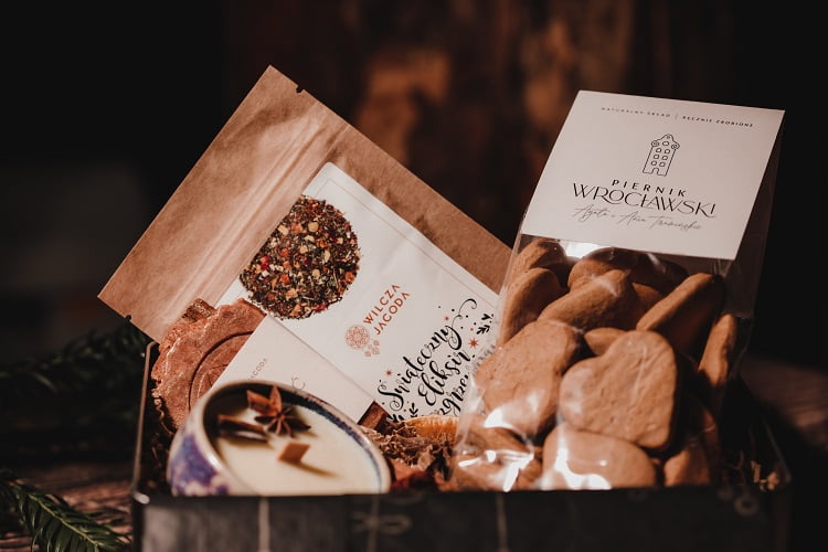 • Pierniki serduszka – 150 g zdrowych słodkości z miodem, barwionych naturalnie warzywami i owocami. Wykonane przez Wrocławską Manufakturę Piernik Wrocławski. Doskonałe do zimowej herbatki pod kocem.
