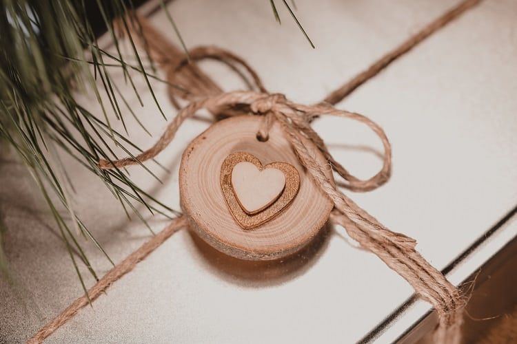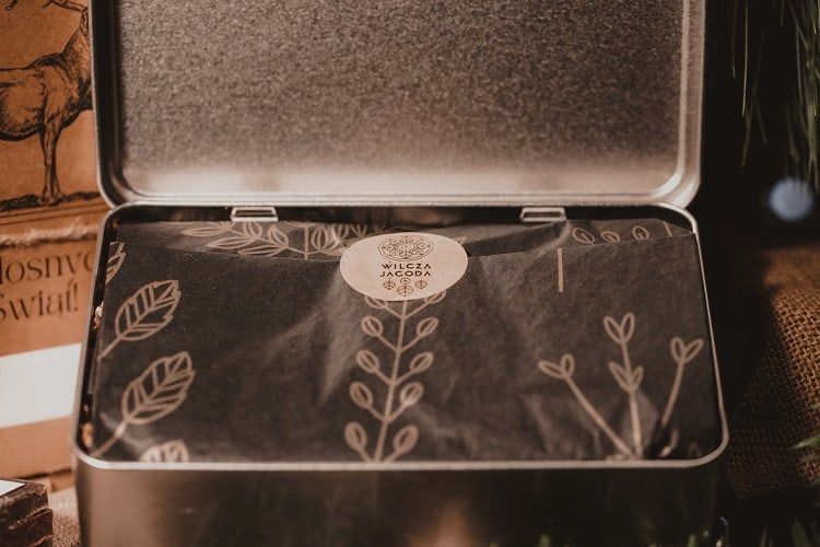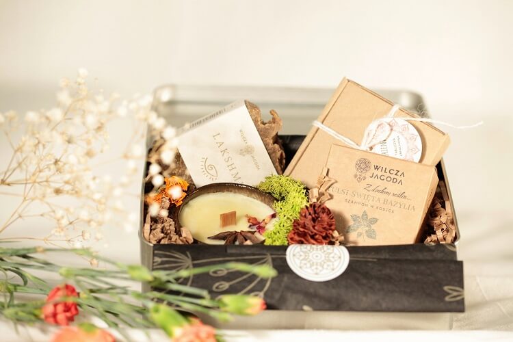 Wszystkie produkty ułożone są w puszce wypełnionej wiórkami papierowymi. Puszka przewiązana jest naturalnym sznurkiem, a na jej szczycie zawieszony jest plaster drewna z serduszkiem.