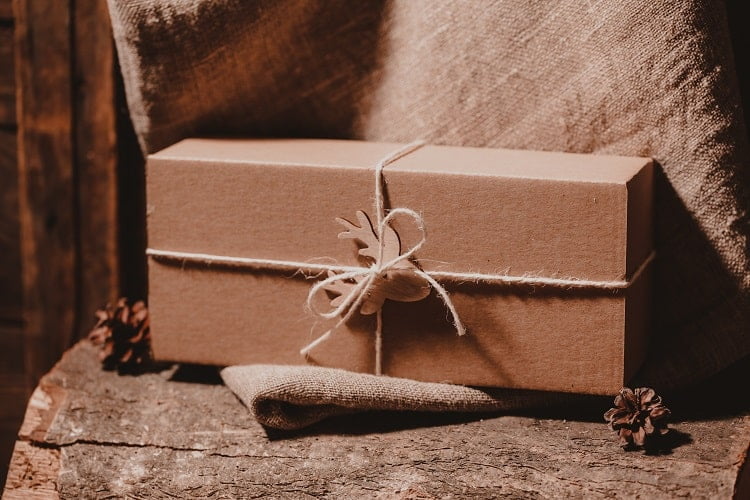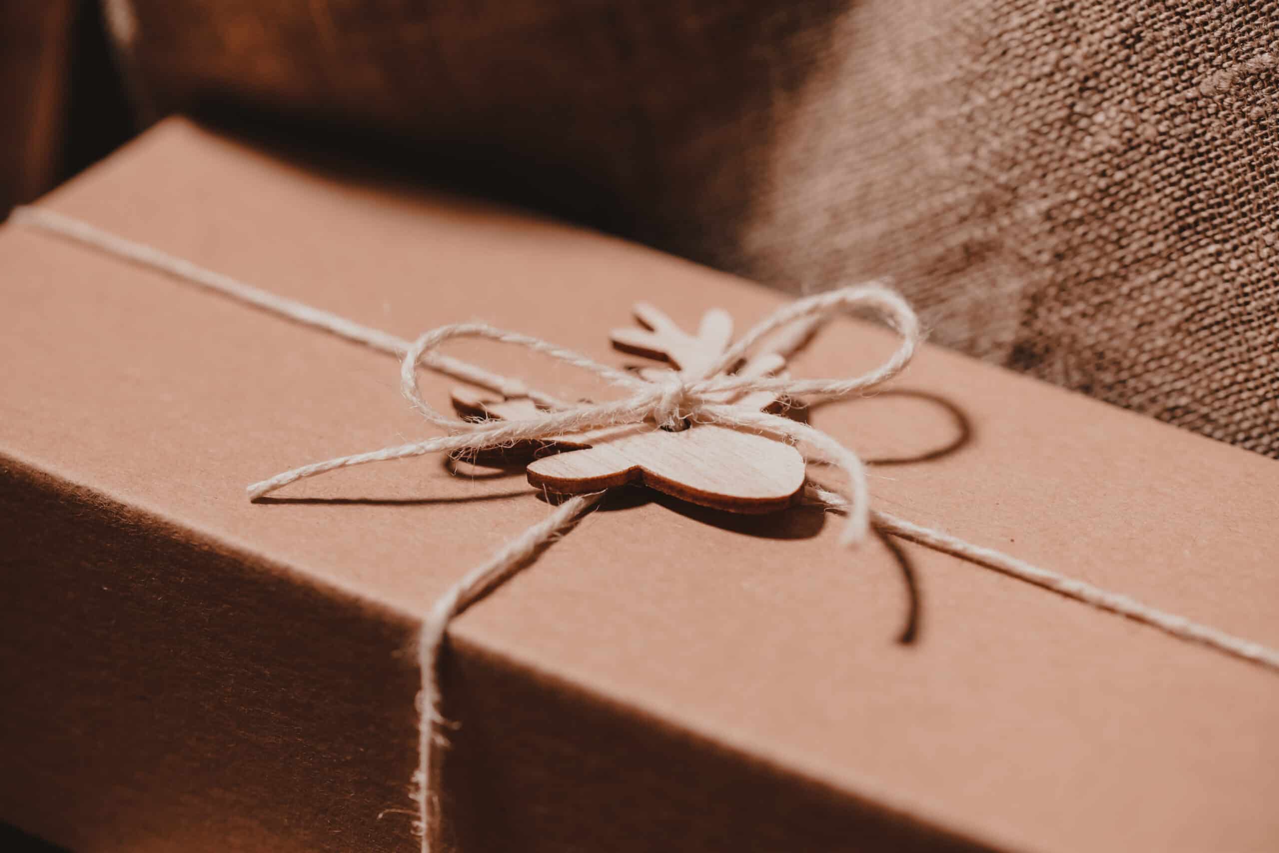 Produkty ułożone są w papierowym kartoniku wypełnionym wiórkami drzewnymi. Całość przewiązana jest naturalnym sznurkiem i ozdobiona drewnianym jelonkiem. Prosto, ekologicznie i z sercem.