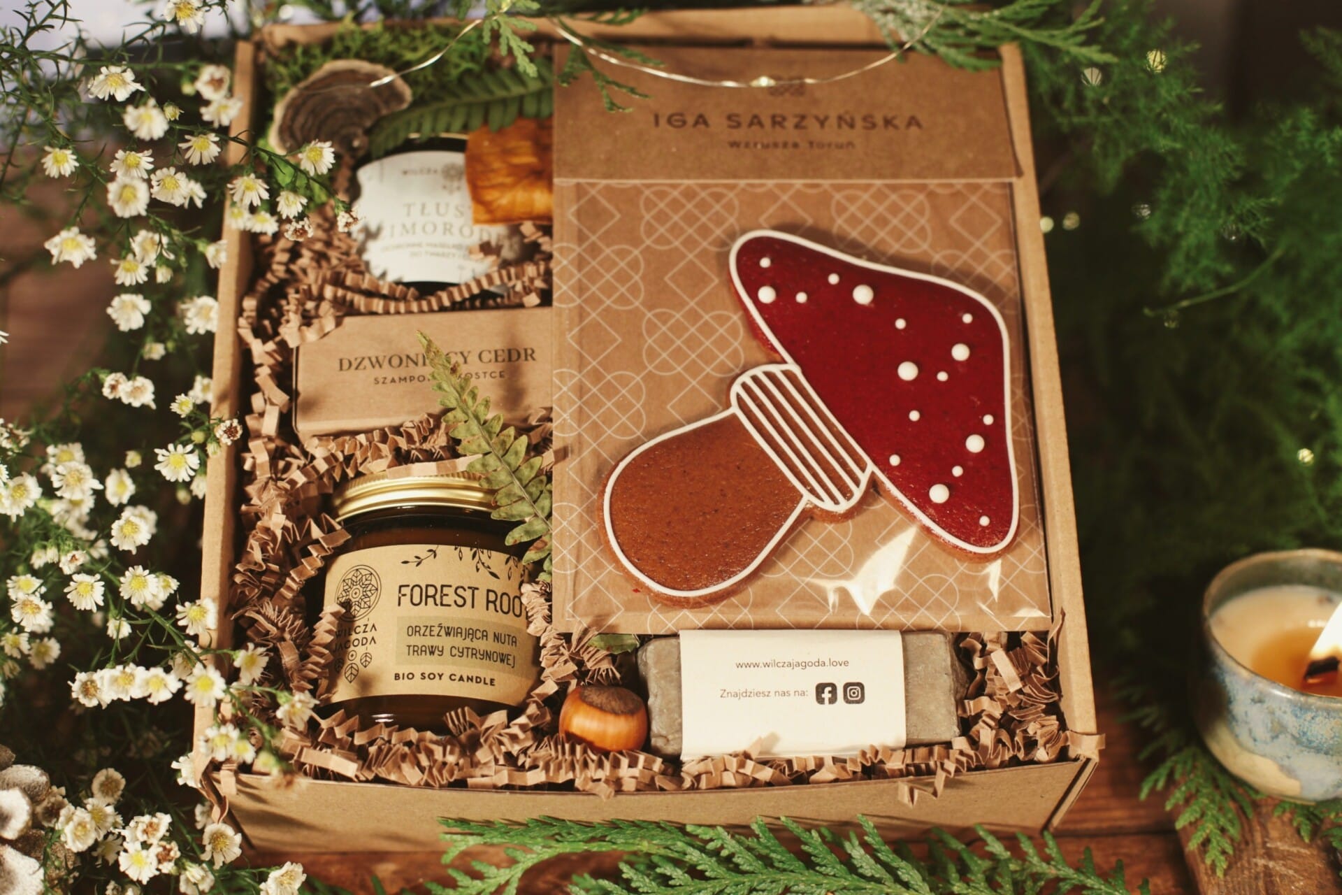 Pachnący igliwiem, zielony, pełen naturalnych akcentów zestaw, który zabierze Cię na wycieczkę do lasu. Wyczujesz w nim nuty cedru, jodły, świerku. Znajdziesz ukojenie dla zmysłów, a także ciała, za sprawą pielęgnujących kosmetyków takich jak masełko Tłusty Zimorodek, mydło Duch Drzew, czy cedrowy szampon w kostce. Miłym akcentem w zestawie jest duży piernikowy muchomor ręcznie malowany w pracowni Igi Sarzyńskiej w Toruniu. Rozpal świecę Forest Root i daj się ukołysać leśnej rozkoszy.