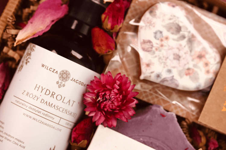 - Hydrolat z Róży Damasceńskiej – naturalna woda kwiatowa powstała w wyniku destylacji parą wodną płatków róży damasceńskiej. Pachnie obłędnie, wyrównuje pH skóry, działa kojąco i relaksująco. Latem może być również stosowana jako orzeźwiająca mgiełka zapachowa.