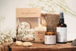 Zestaw zapakowany jest w różowy, papierowy kartonik z certyfikatem ekologicznym FSC. Wewnątrz znajdziesz papierowe wypełnienie i dekoracje z suszonych kwiatów oraz roślin. Wieko zdobi tłoczona, złota mandala, która dodaje całości elegancji i subtelnego blasku. Każdy szczegół dopracowany jest tak, by prezent cieszył już od pierwszego spojrzenia.