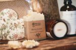 - Mydło 100 g – kostka naturalnego mydła gotowanego w naszej manufakturze. Możesz wybrać zapach, który najbardziej pasuje do Twojego zestawu – owocowy, kwiatowy lub wiosenny.